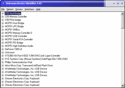 6 апреля 2010 г. Unknown Device Identifier - Отображение всех устройств в системе. В отличии от сонма подобных программ читает информацию из самого железа, даже если оно не определено в системе, то бишь прописано как "Неизвестное устройство" . Информация это такая как поставщик, идентификатор плюг&плэй, класс усройства, используемая шина, OEM информация и пр. Вся эта инфа позволяет определиться на какое все таки устройство не поставлен драйвер и установить его. Неброско, просто, но результативно. Обнаруженые недостатки: